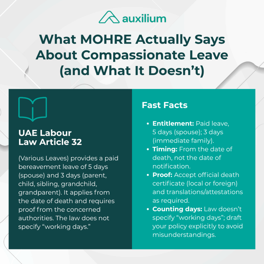 What MOHRE Actually Says About Compassionate Leave (and What It Doesn’t)