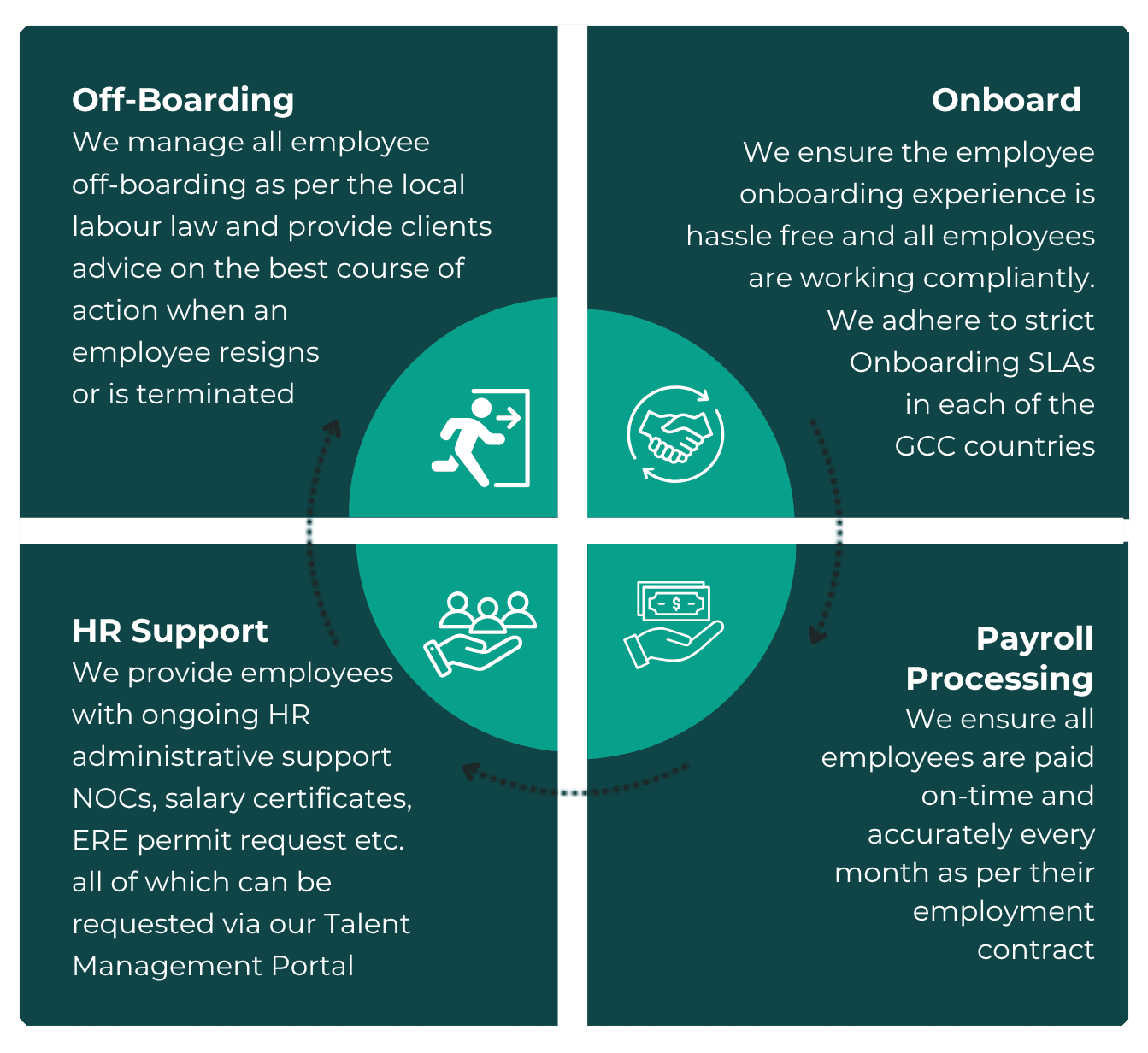 Streamlined processes: Auxilium manages the full employee lifecycle in Kuwait, including hiring and onboarding, employment documentation, payroll and benefits administration, and ongoing compliance with local laws and regulations.