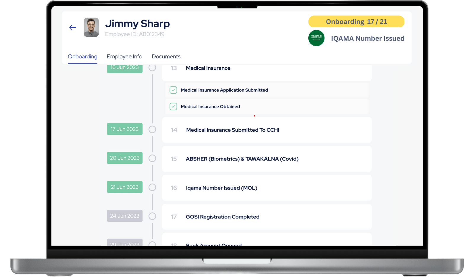 The Auxilium Talent Management Platform is a cutting-edge technology platform that provides businesses with unmatched localized visibility on the visa onboarding process across the Gulf Cooperation Council (GCC) countries. With real-time tracking of visa applications and approvals, our platform allows users to monitor the progress of the onboarding process and stay informed every step of the way.